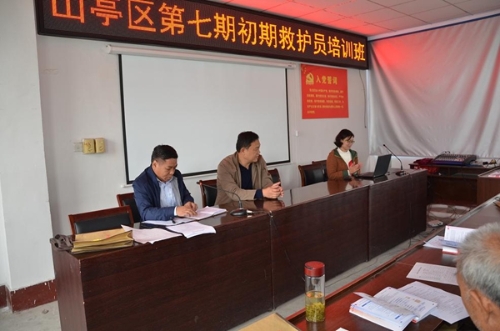 此 次培训采取理论知识讲解和实际操作相结合的方式进行,来自山亭区人民医院的专家用生地、形象的语言向大家讲解了红十字救护理论知识、心肺复苏术、创伤救护 与现场模拟实践操作演练等内容,重点介绍了急救过程中常用的心肺复苏法,并进行了现场模拟操作和示范,对操作不规范的地方及时给予指导和纠正,受到了大家 的一致欢迎。
